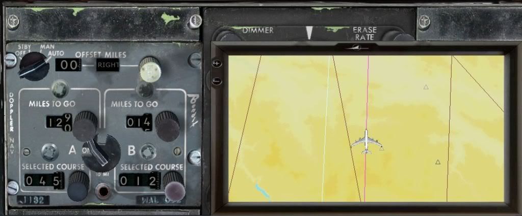 I was expecting the system to be dumb and just blindly follow the data entered, meaning if I turned doppler nav on at a different starting point than specified in the flightplan, it would just follow an offset route. Well, it does not.