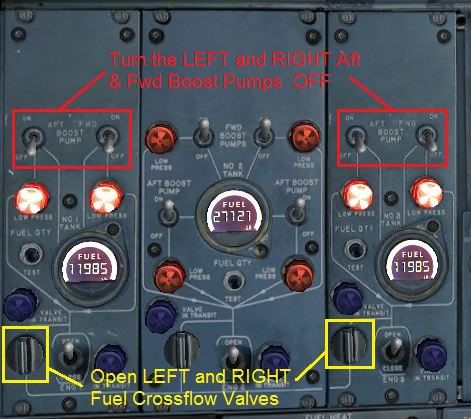 6. Boost pumps in tank 3 off, one at a time - observe engine.