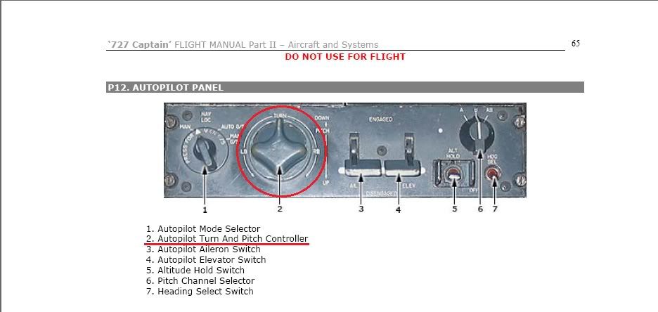 This was not my favorite autopilot, but if you made small movements of the knob in pitch, it would do an OK job. Some of the pilots would use just the AIL paddle to control heading and just use the autopilot trim on the center console marked CRUISE TRIM.