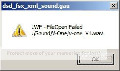 No, When the freeze happens I don't get any message just the freeze...The sound keeps going,as if the sim doesn't notice the freeze ( Strage)? Then when the needle hits 80 KTS the ding comes...Waiting a little longer another one comes,like if correspponding to the gear-up sound?...Then I close it via CRTL+Alt+Del then I notice that down on the task bar there a window dsd_fsx_xml_sound.gau. when I unstall the gauge,ie delete it from everywhere,put in my unedited .cfgs Try to fly I don't freeze...