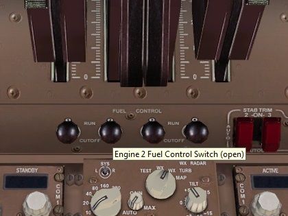 The Captain Sim 777 Fuel Control Switches are set to RUN (that should be the same as OPEN shouldn't it?), but when I try to start the engines and the N2 reaches 20%, they don't start. Even if I close them, then open them, then press the Engine Start switches, they still don't start. To get them started, I have to press CTRL+SHIFT+F4, which is the default keyboard control for Mixture (full rich). This means that the animation tag (which controls the way the switches work and what they do in FSX) is different to the default MSFS b747_400. So I'm assuming that Captain Sim must be using a custom code that does not override the Mixture (idle cutoff) setting from my default flight, so the 777 engines do not start without using the keyboard command to move the Mixture lever to full rich (100%). If I change the Mixture (idle cutoff) to Mixture (full rich) in my default flight, then the engines will start. In all my other Captain Sim aircraft, including the 757 and 767, which have the same sort of Fuel Control Switches, they do override the settings in my default flight!