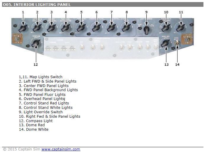 Switching off the knob labeled as "5. FWD Panel Fluor Lights" on the overhead panel, increases 2D AP panel visibility, but on the other hand sensibly decreases "Heading Selector" and "Course Selector" visibility on HSI, as well as turns off overhead panel instruments light. "6. Overhead Panel Lights" knob doesn't work. IMHO, cockpit and instruments lighting need to be reviewed.