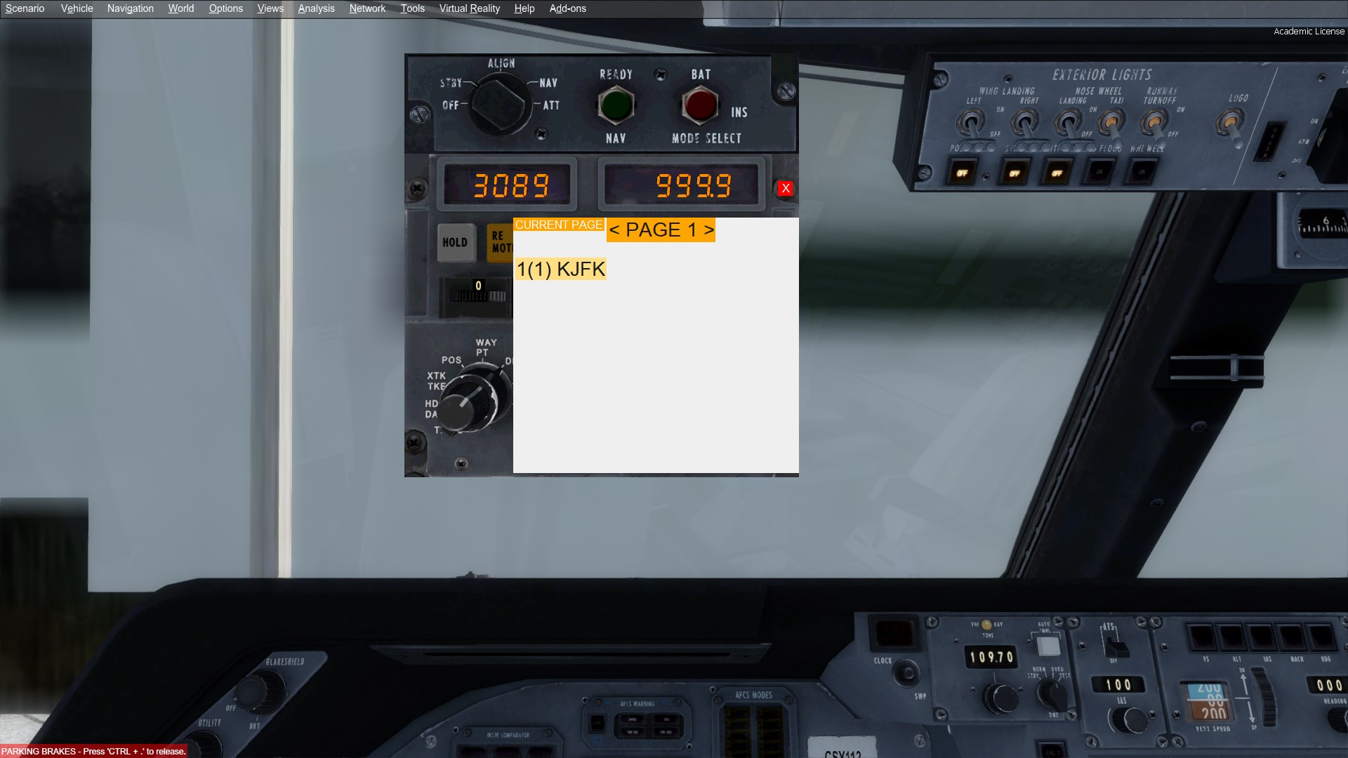 The INS turns on with the initialisation entry in [VCockpit01], just like it does if I add it to the bottom [Window00] (documentation says it must be there, but you must use SHIFT+1 to initialise it (nothing shows up on the screen when you this, and nothing should either)), or at the bottom of [Window03]. Even though it intialises, it still stops 65 during the alignment. I remember having this problem with the 707 Captain, but I can't remember the fix.