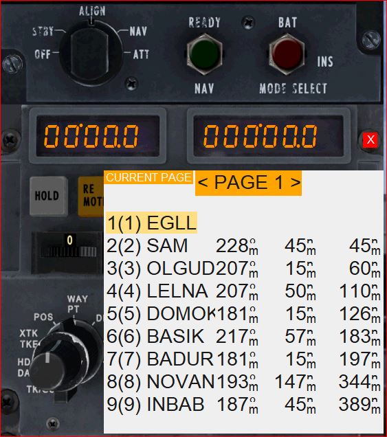 I found a YouTube featuring a female doing  an INS Tutorial, and did try to follow it, and thought I had managed to enter the first 9 waypoints, but even after selecting NAV and HDG, and setting FMS, the L-1011 reversed course!
