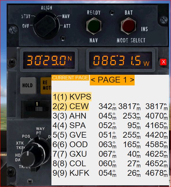 In the attached image, it shows all that is needed for the route loaded into the INS to be tracked (the INS on left side of the image shows the Ready NAV light is green, so the Mode Selector Knob, on the INS, can be now be rotated to NAV).