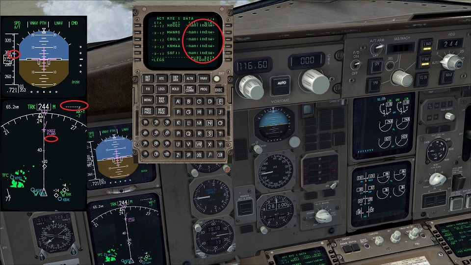 If I enter my wind data in the FMC in the CRZ, it works first, but from this moment on the displays on the PROG and LEGS RTE DATA page start to spin. The ads jump back and forth between a normal ad and a faulty ad every second. Depending on the situation, VNAV is also affected and is switched off.