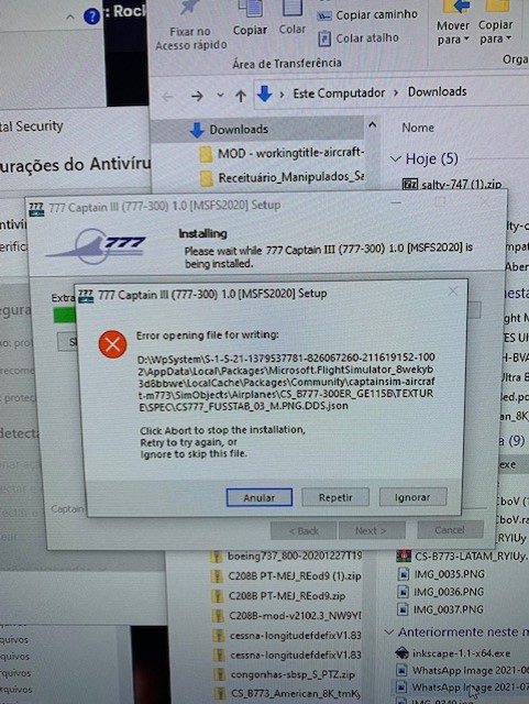 I've tried changing the folder name, shortening the folder name and even installing in a folder outside MSFS. However, in all the message below appears during the installation.