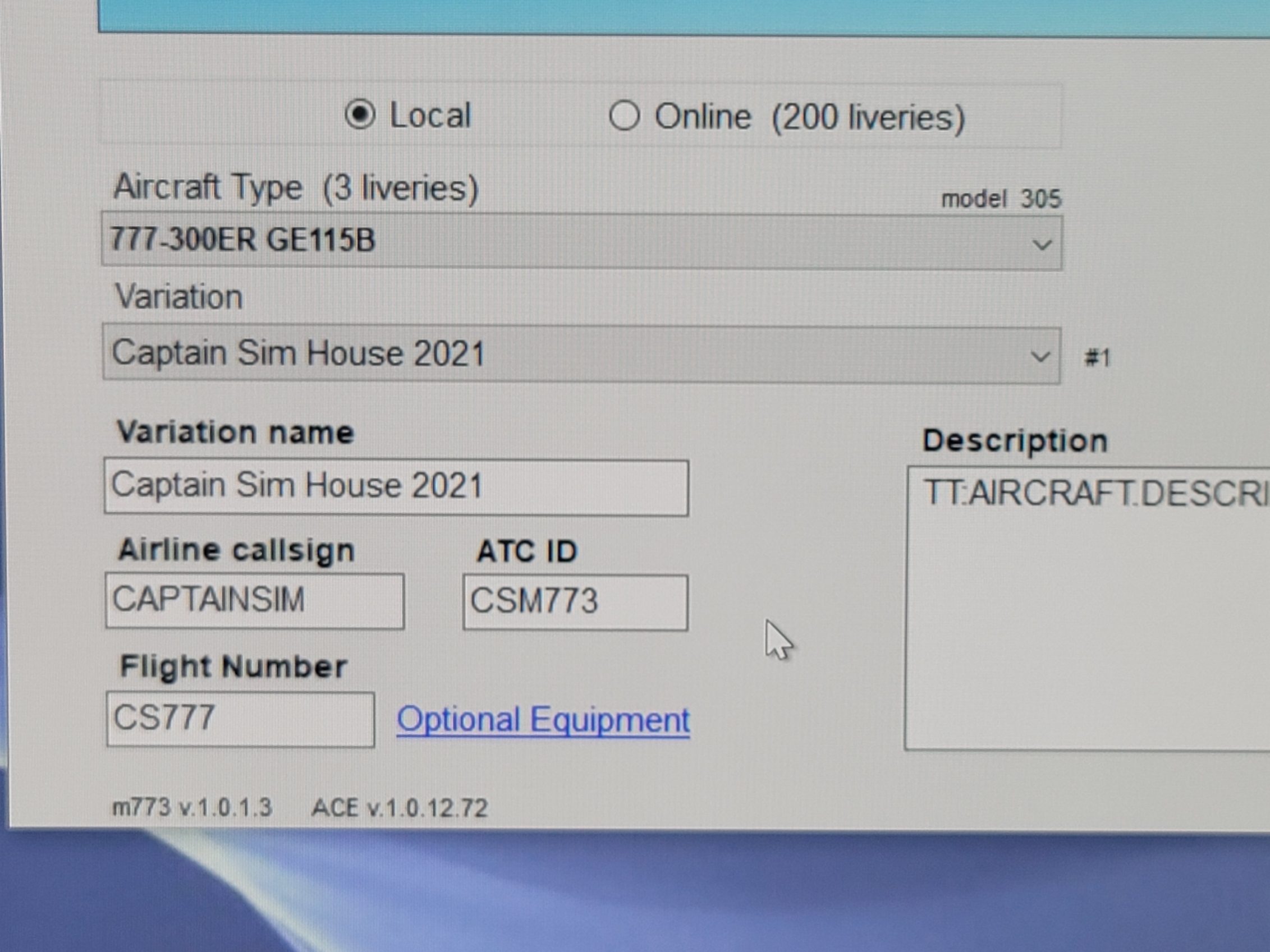 | CAPTAIN SIM FORUM › MSFS2020 › 777 Captain III › Can't add Livery for 777-3? |
