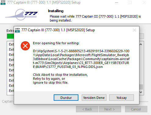 | CAPTAIN SIM FORUM › MSFS2020 › 777 Captain III › Installation Problem |