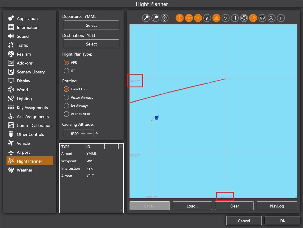 So I did all that, and it worked fine. Although my flight plan was from YMML to YBLT for a C-172, after creating a waypoint, saving the plan, then editing the data to: <WorldPosition>N35° 0' 0.0",W060° 0' 0.0",+006500.00</WorldPosition>, it placed the waypoint right on the intersection of N35 and W060 (see attached image).